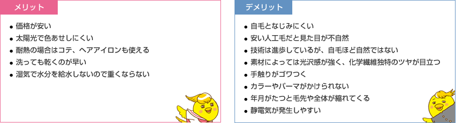 また人毛に比べて圧倒的にお手入れが楽だという利点もあります。